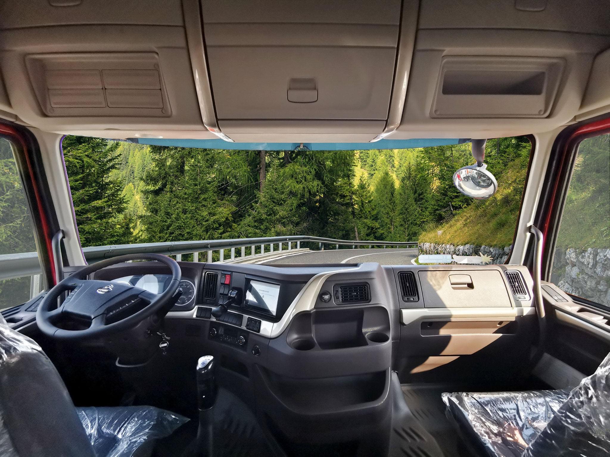 Cabin Chenglong H7 hoàn toàn mới hiện đại và tiện nghi hơn. Cản trước bằng thép thiết kế mới giúp chịu được va dập tốt hơn và vượt địa hình dễ dàng hơn. Mặt la găng kiểu mới bằng thép tấm cũng tăng cường độ cứng vững.