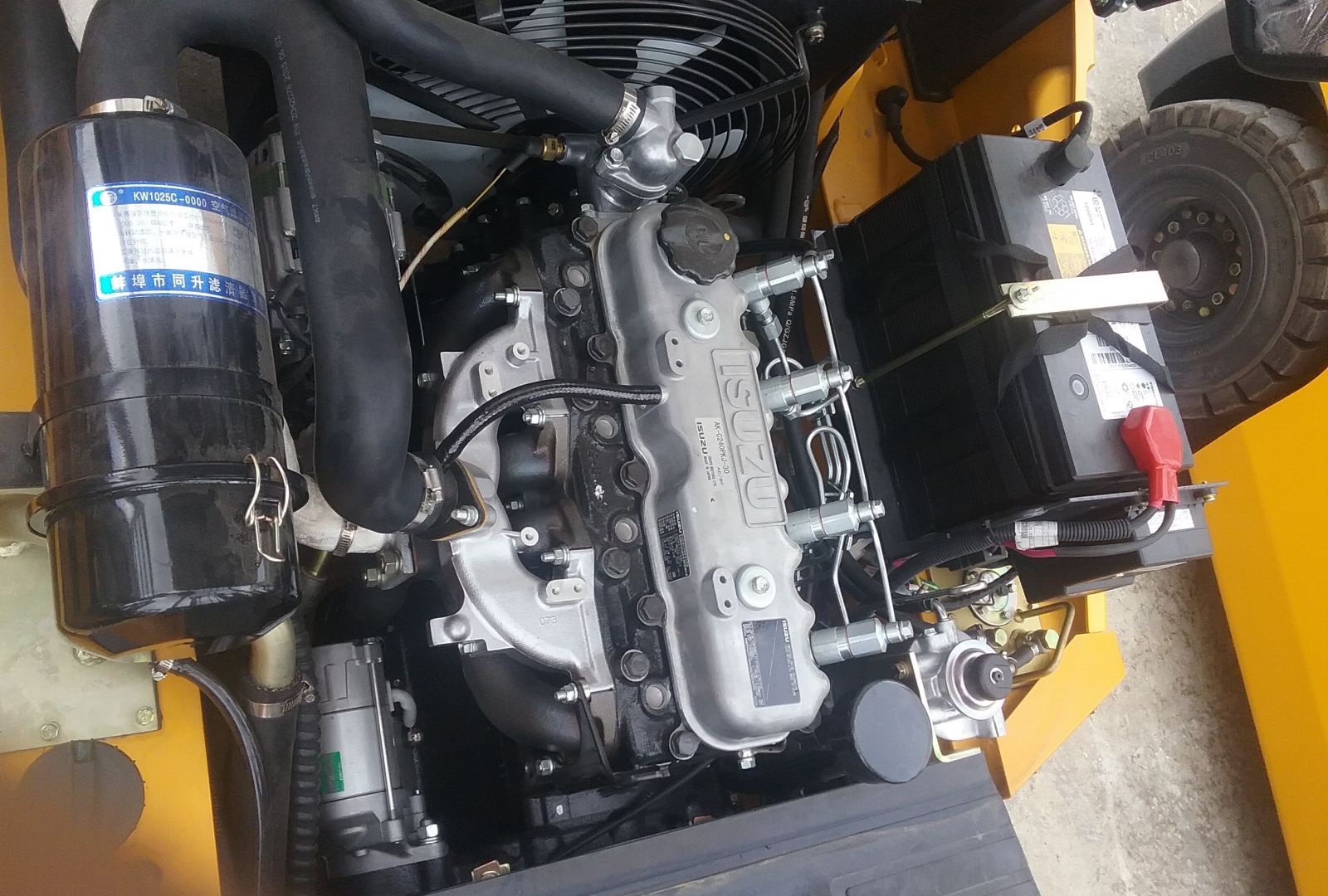 - Động cơ Xinchai A490 ( Trung Quốc) hoặc Isuzu C240 ( Nhật bản), phổ biến trong các dòng xe nâng, mạnh mẽ và dễ dàng thay thế sửa chữa.