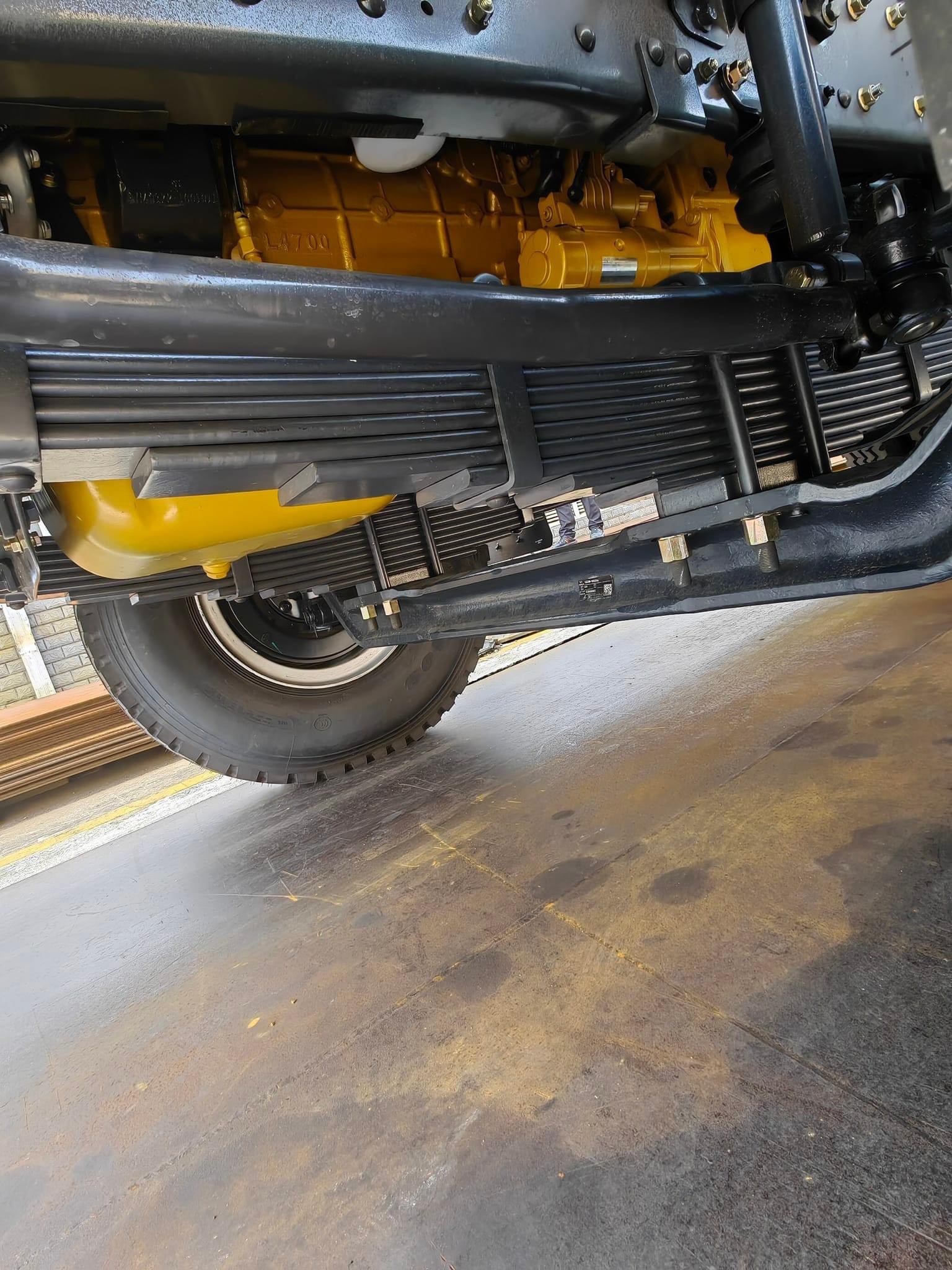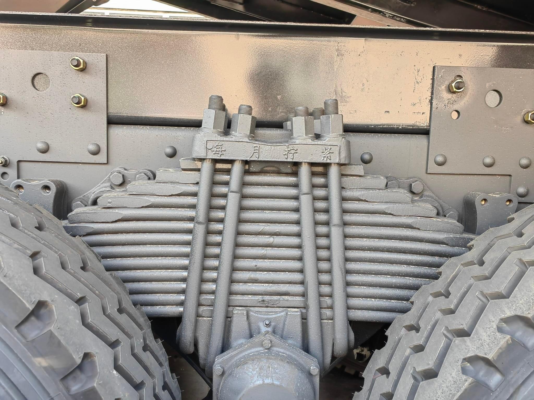 Thép hình chữ U 02 lớp với tiết diện 273x(8+5) mm. Hệ thống nhíp 2 trục trước 9 lá nhíp, có giảm xóc thủy lực với 2 chế độ chống xóc và chống dịch chuyển. Trục sau 13 lá nhíp. |